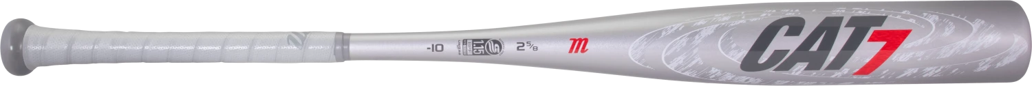 Shine at the plate with the CAT7. The 2020 Marucci CAT7 -10 Senior League Baseball Bat is built to explode with unrelenting fury, now in a new silver color way. The precision-balanced barrel and one-piece alloy design offer a clean, consistent swing to control the wrath of this ultra-responsive rainmaker.